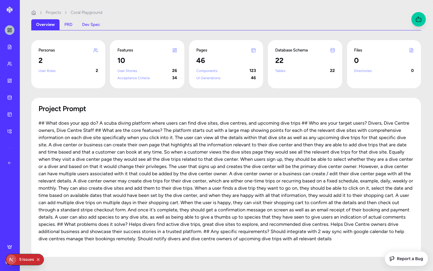 Ready State: Your project is now fully initialized. The tabs for Personas, Features, and Schema are now available for generation.